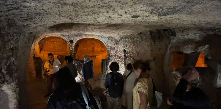 Inizieremo la giornata con la possibilità di fare un suggestivo giro in mongolfiera all’alba sopra lo splendido scenario della Cappadocia (escursione da prenotare tassativamente entro il 15 agosto 2023 in agenzia, da saldare in loco con carta di credito o contanti solo dopo conferma da parte dell’organizzazione in base alle condizioni metereologiche. Nell’impossibilità di effettuare l’escursione nella giornata odierna, sarà riproposta, se le condizioni meteo saranno favorevoli, nelle mattine del 29 o 30 settembre). Rientro in hotel per la colazione. In mattinata visita della città sotterranea di Kaymakli: qui cinque livelli si estendono sotto terra e includono: abitazioni, cucine, torchi, ripostigli, stalle e pozzi di ventilazione. I primi cristiani scavarono questi complessi sotterranei per evitare gli invasori delle pianure dell’Anatolia dal VI al IX secolo. Pranzo in corso d’escursione presso una tipica casa locale con menù a base di deliziosi piatti della zona. Nel pomeriggio visita del Museo all’aperto di Goreme: l’XI secolo rappresenta il “secolo d’oro” dell’arte religiosa a Goreme. È la valle delle chiese. I meravigliosi e primitivi affreschi dell’XI e XII secolo ricoprono le pareti di queste chiese, le più antiche risalgono al VI secolo. Al termine delle visite rientro in hotel, cena e pernottamento.