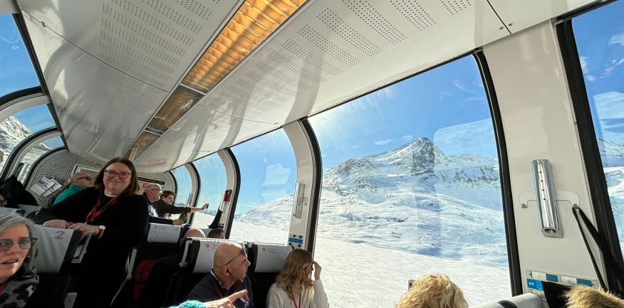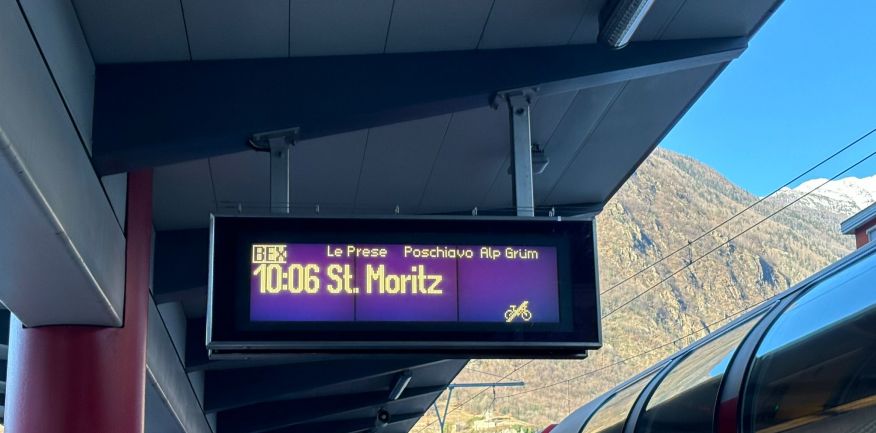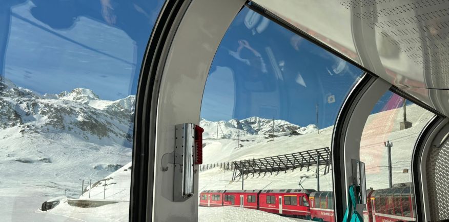 Intorno alle 5.30 partenza per Tirano. All'arrivo incontro con la guida e alle 10.06 partenza con il Trenino Rosso del Bernina in carrozze panoramiche (BERINA EXPRESS PANORAMICO) per St. Moritz con arrivo alle 12.35.