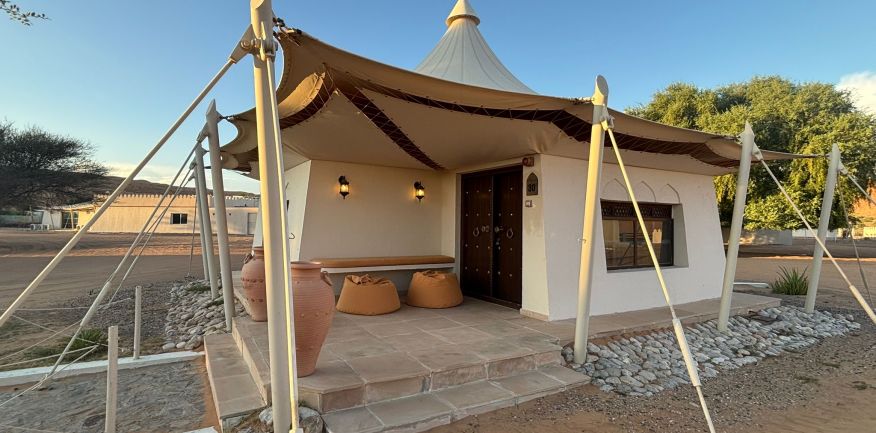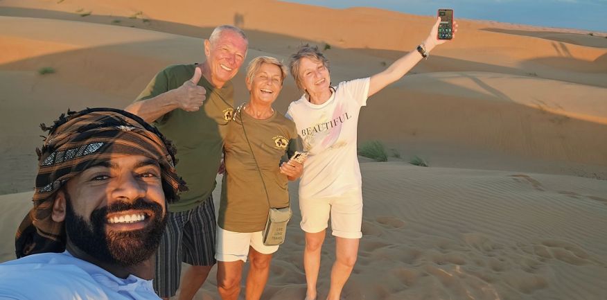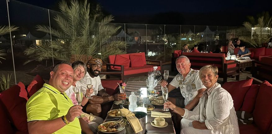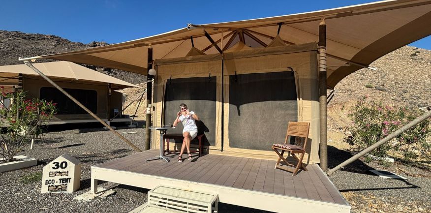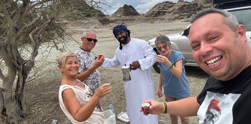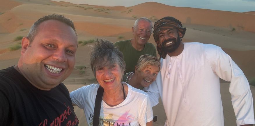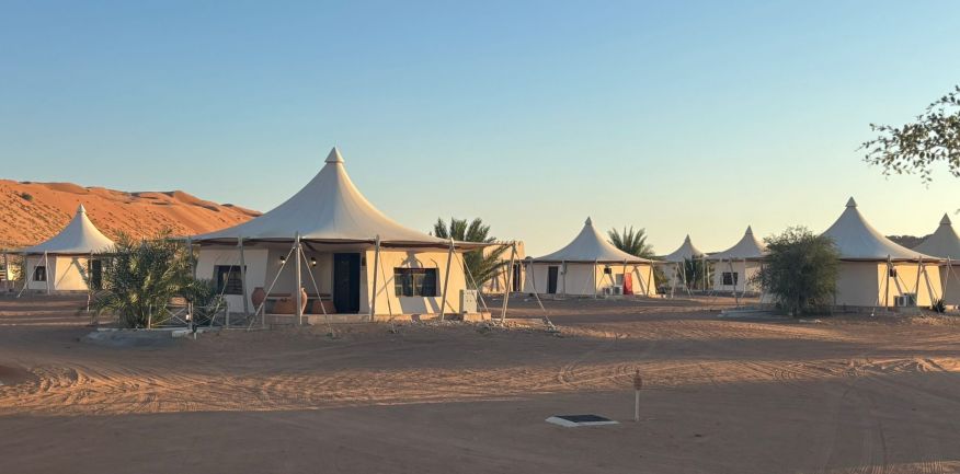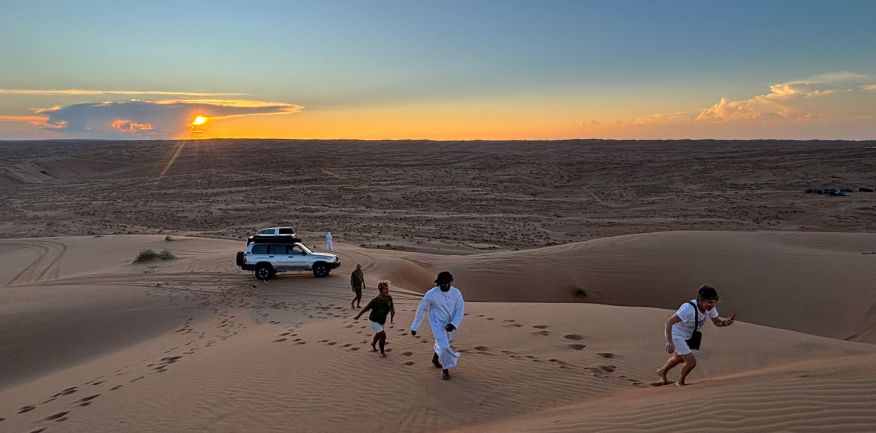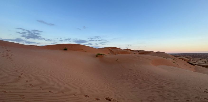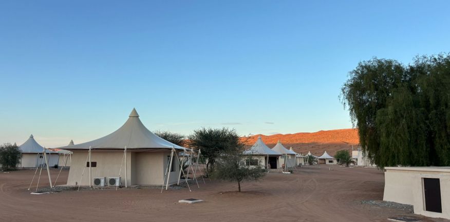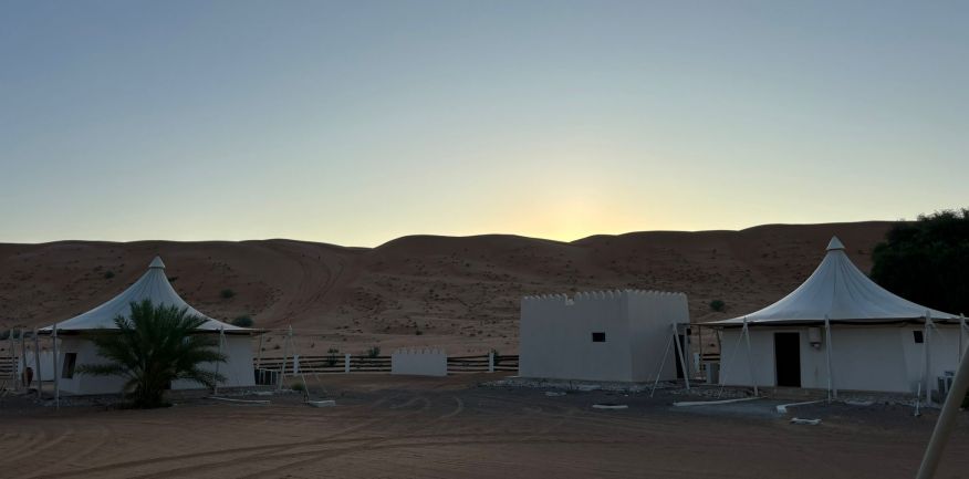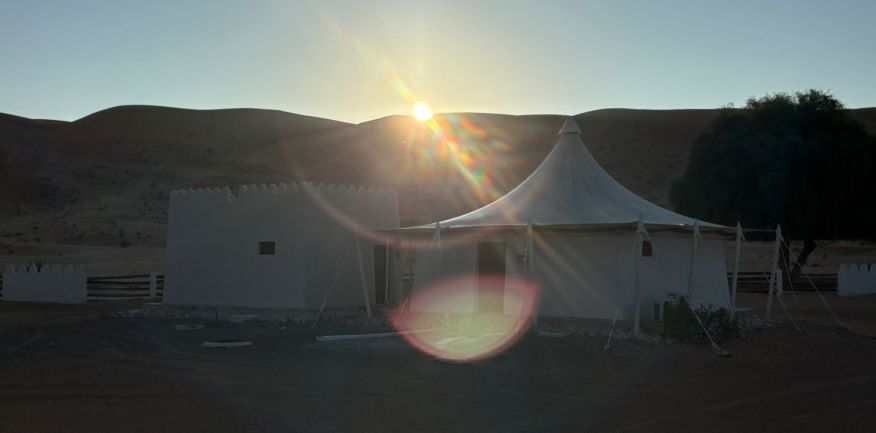 Dopo la prima colazione in hotel, check out e partenza per Al Khabbah dove la costa si staglia sul mare con alti e spettacolari promontori. Arrivo a Jalan Bani Bu Ali, dove si potranno fare delle foto al vecchio forte e alla particolare Moschea Al Samooda, caratterizzata dai suoi 52 domi, unica nel suo genere in Oman. Si prosegue per il Wadi Bani Khalid, visita di questa spettacolare oasi, una delle più belle e famose dell'Oman. Pranzo in ristorante. Proseguimento per il deserto di Wahiba Sand con le sue dune rosate. Sistemazione nel campo tendato. Nel pomeriggio entusiasmante escursione nel deserto inoltrandosi fra le dune, al termine del dune-bashing attesa del tramonto e rientro al campo per la cena ed il pernottamento.