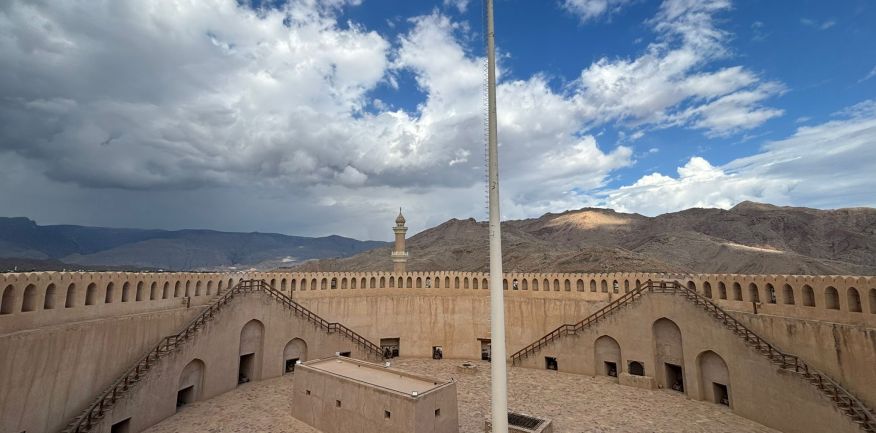 Dopo la prima colazione in hotel, check out e in mattinata arrivo a Nizwa per la visita del caratteristico forte a pianta circolare, del castello e del museo. Si passerà quindi alla visita dei caratteristici suq con i negozi di artigianato e spezie, datteri, frutta, verdura; qui potrete comprare anche l'acqua di rose. Pranzo in ristorante. Sosta fotografica panoramica a ai villaggi di Al Hamra e di Birkat Al Mouz immersi in lussureggianti palmeti. A Birkat Al Mouz si trova il Falaj posto sotto la protezione dell'Unesco. Proseguimento per Muscat. Sistemazione in hotel. cena e pernottamento.