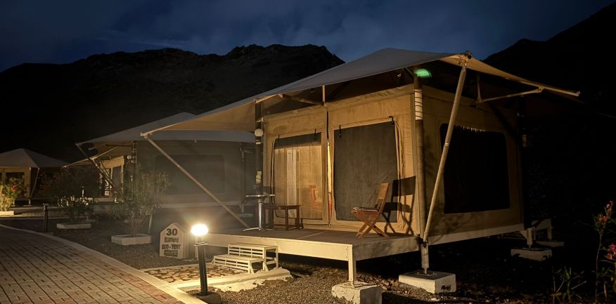 Dopo la prima colazione, check out e partenza in fuoristrada verso Wadi Arbeen, una delle oasi più belle e selvagge del Sultanato attraversando le montagne dell'Hajar con le rocce multicolori, rose beige e nero. Arrivo a Biman Sinkhole una caratteristica formazione geologica dove si incontrano le acque dolci dei Wadi e salata del mare. Pranzo in ristorante. Proseguimento verso Tiwi, passeggiata attraverso la Wadi ricca di palme da dattero e alberi da frutta. Visita di Sur graziosa cittadina famosa per i cantieri navali dove vengono costruiti ancora con metodi tradizionali i Dhow, la tipica imbarcazione omanita. Visita dell'area di Ras Ayqah con il faro e le case dei pescatori con le particolari porte delle abitazioni intagliate retaggio dei contatti con l'Africa. Proseguimento per la Ras Al Jinz Turtle Reserve, sistemazione in Eco Tent. Cena e pernottamento. In serata possibilità di recarsi alla spiaggia, accompagnati dagli addetti del parco, per vedere le tartarughe, un'esperienza emozionante! Oltre all'escursione serale che viene effettuata dalle ore 21.00 in presenza delle tartarughe, sarà possibile recarsi sulla spiaggia anche all'alba per la seconda visita.