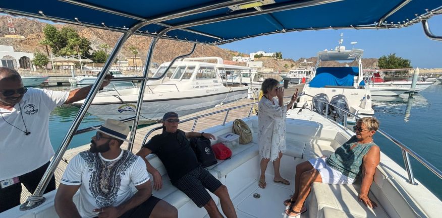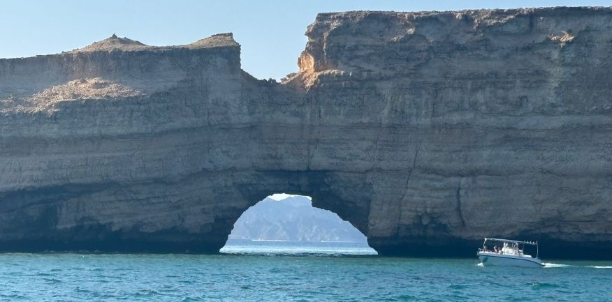 Dopo la prima colazione in hotel, trasferimento in pullman riservato alla Marina. A bordo di una barca veloce si scenderà lungo la costa da Muscat fino a Bandar Al Khayran con scenari incantevoli: archi naturali formazioni rocciose erose dal vento e dall'acqua, calette e spiagge deserto, fondali marini cristallini, la crociera dura 5 ore, possibilità di snorkeling, pranzo a bordo. Il rientro in hotel è previsto nel pomeriggio. Cena e pernottamento in hotel.